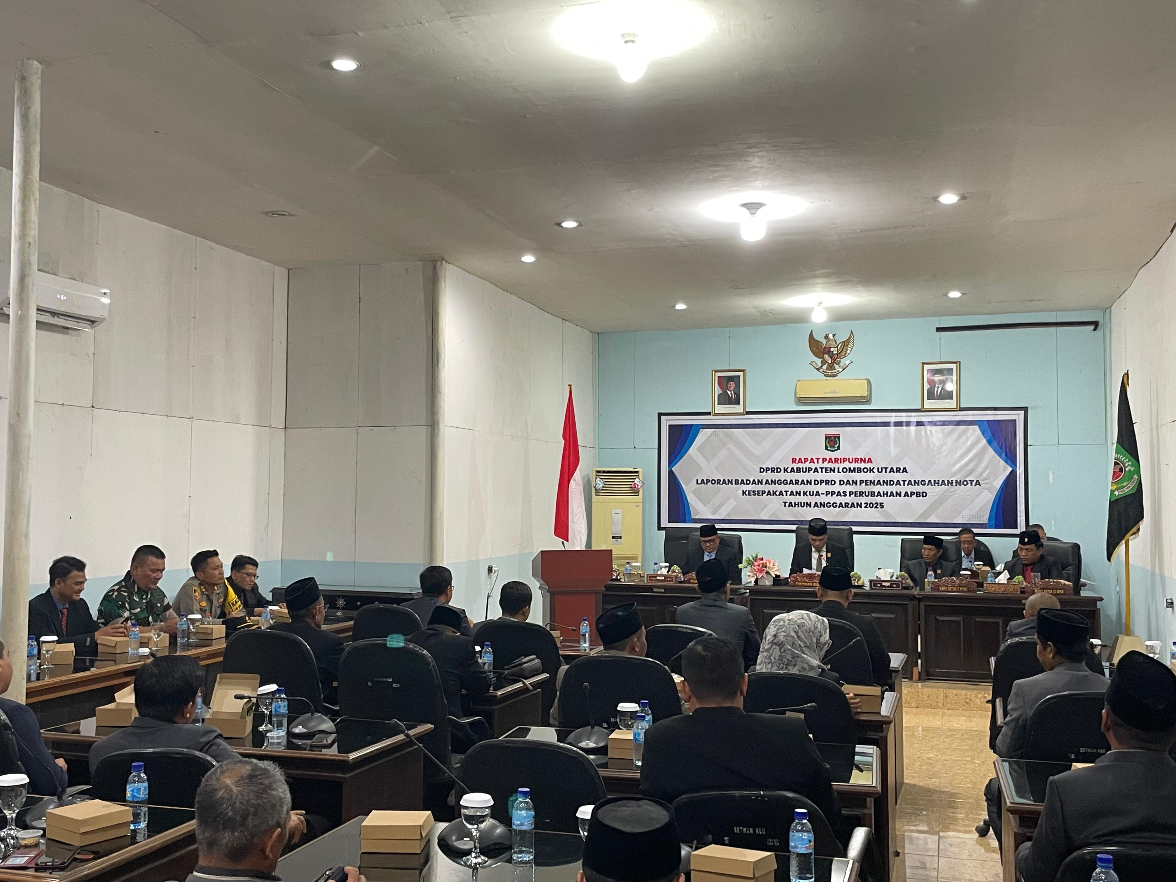 Lombok Utara – Kapolres Lombok Utara, AKBP Agus Purwanta, S.I.K., menghadiri Rapat Paripurna DPRD Kabupaten Lombok Utara yang membahas Laporan Badan Anggaran (Banggar) DPRD sekaligus penandatanganan Nota Kesepakatan antara Kepala Daerah dan DPRD terhadap Kebijakan Umum Anggaran serta Prioritas dan Plafon Anggaran Sementara (KUA PPAS) Perubahan APBD Tahun Anggaran 2025.