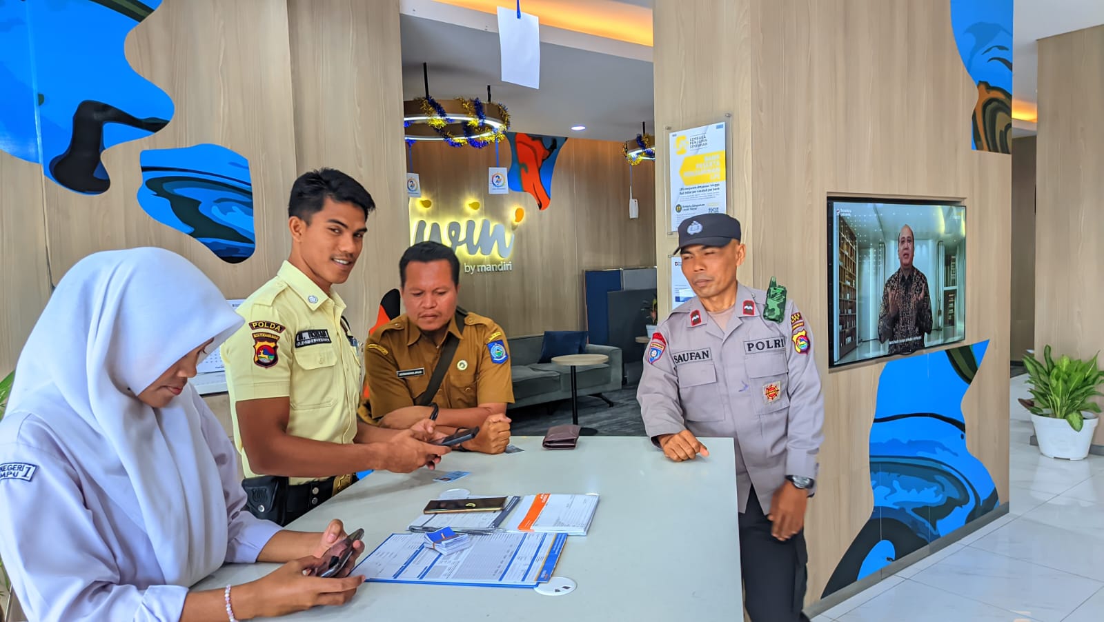 Ps. Kanit Binpolmas Polres Dompu AIPDA Saufan bersama anggota Satbinmas melakukan pengecekan dan pengarahan kepada Satpam Bank Mandiri Cabang Dompu, Senin (06/10/2025) pukul 10.00 Wita di Kelurahan Bada, Kecamatan Dompu.