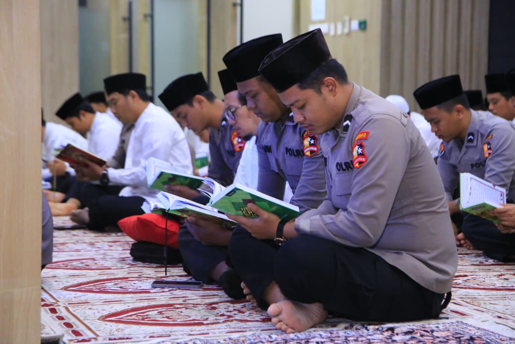 Jakarta. Divisi Humas Polri menggelar khataman Al-Qur’an menjelang peringatan hari jadi ke-74. Khataman ini melibatkan 74 orang Tahfiz Quran dari sejumlah pesantren beserta personel anggota Divhumas Polri.